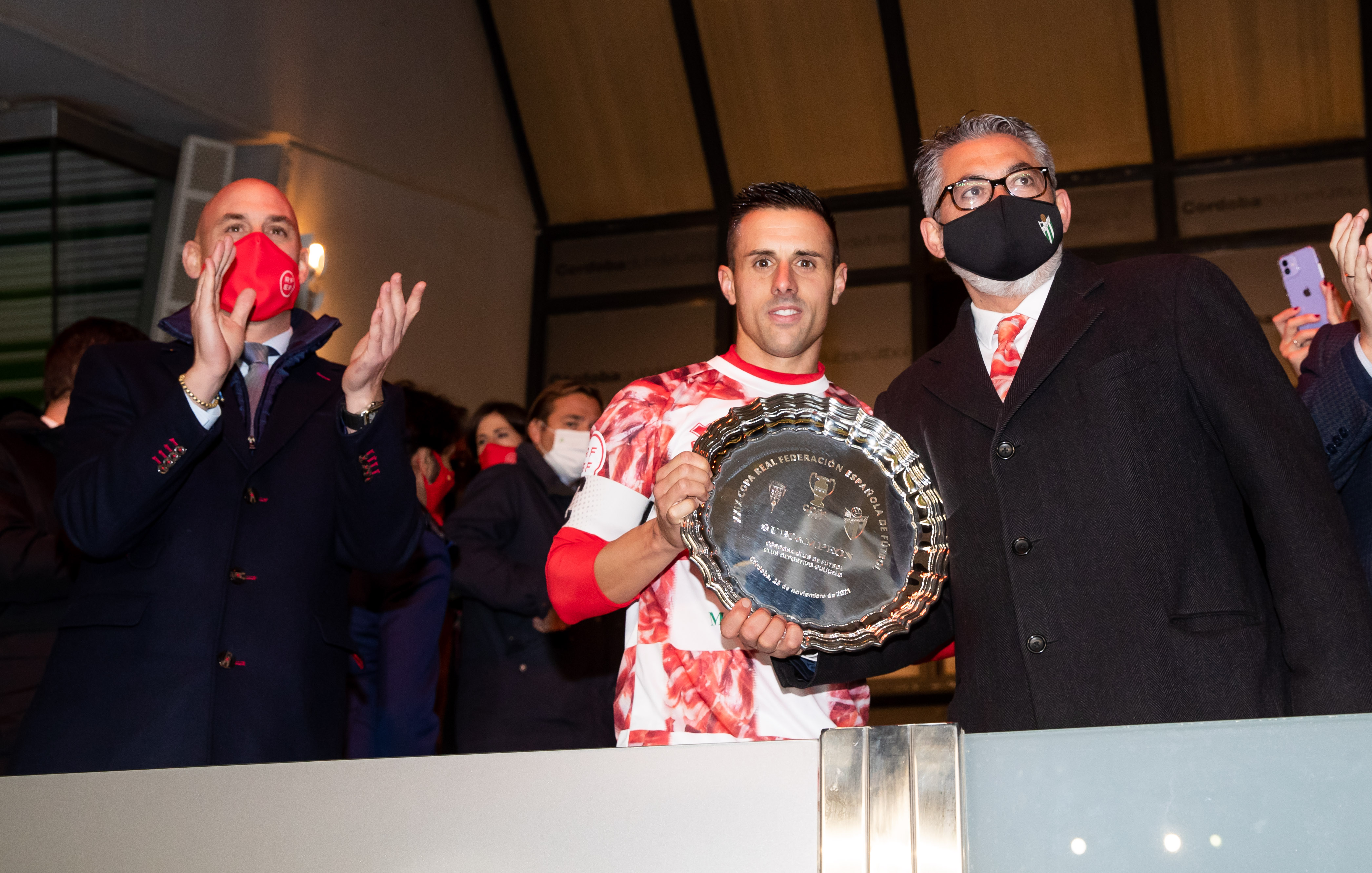El presidente de la RFEF, Luis Rubiales, ha entregado el trofeo al capitán del equipo ganador que ha dado inicio a las celebraciones por parte de los miles de seguidores que han llenado las gradas del estadio Nuevo Arcángel.