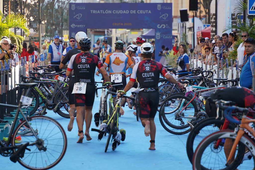 Con 70 triatletas masculinos, 40 femeninos, 70 inscritos en la prueba popular, la prueba ha desembarcado en el centro urbano de Ceuta, que ha llenado las calles este domingo 5 de octubre.