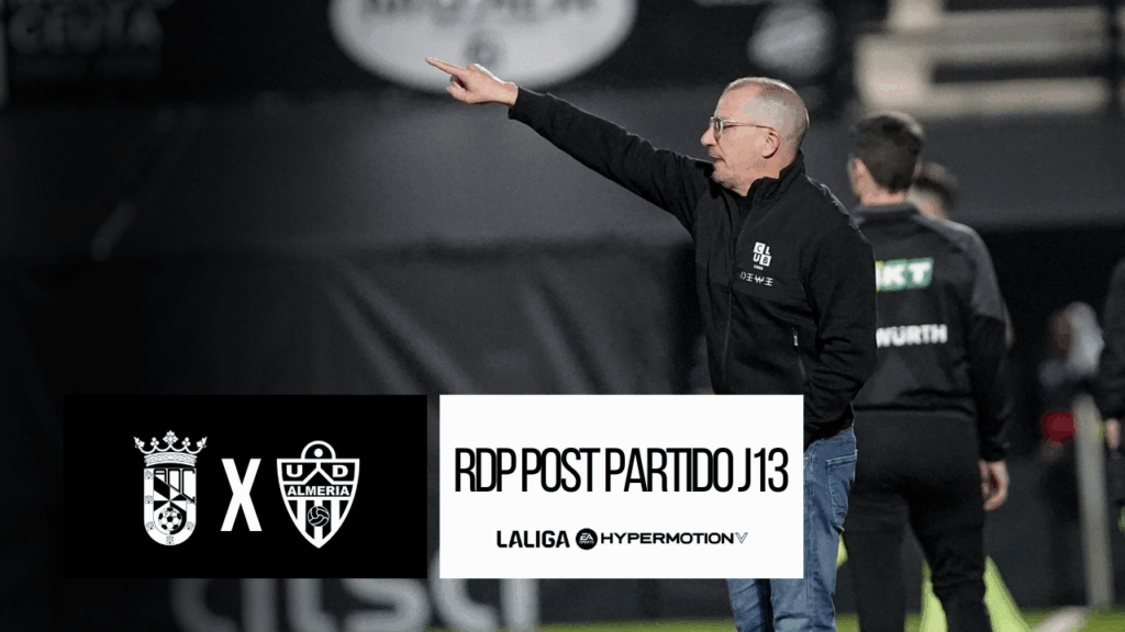 La AD Ceuta FC ha logrado una importante victoria por 3–2 ante el Almería en la reanudación del encuentro que quedó suspendido el pasado 9 de noviembre por el fallecimiento de un aficionado en el estadio. El choque se ha completado disputando únicamente la parte de la segunda mitad que había quedado pendiente. Tras el encuentro, el entrenador del conjunto caballa, José Juan Romero, ha valorado el resultado y el rendimiento de sus jugadores, comenzando por el análisis global del partido, “Aunque haya sido medio tiempo, habría que analizarlo, un primer tiempo donde se para el partido y después lo hemos vuelto a reanudar hoy. En ese primer tiempo fuimos muy, muy, muy superiores al Almería, donde teníamos que haber ido con un resultado a favor amplio.” El técnico ha explicado que el equipo acusó cierto nerviosismo tras adelantarse pronto en el marcador en la reanudación, “Hemos metido muy pronto y eso nos ha ocasionado nerviosismo, ansiedad y precipitación, metiéndonos demasiado atrás. Cuando tú a un equipo como este te escondes, te matan, porque son muy buenos, probablemente el equipo de más nivel de la categoría.”