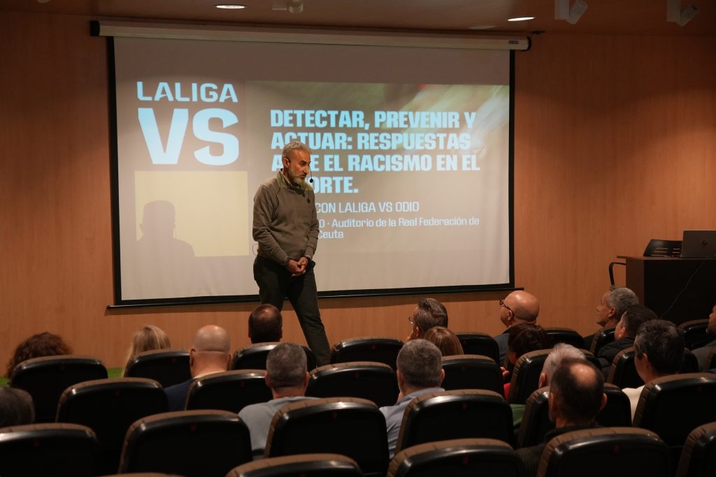 La Ciudad Autónoma de Ceuta ha acogido este miércoles, 4 de marzo, el taller “Detectar, prevenir y actuar: respuestas ante el racismo en el deporte”, una iniciativa impulsada por LaLiga dentro del proyecto LaLiga VS y la Red de Ciudades contra el Odio, cuyo objetivo es combatir el racismo, la discriminación y cualquier forma de odio en el ámbito deportivo.