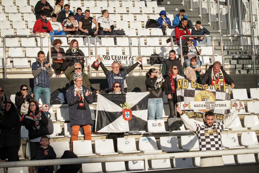 En el minuto 21, Bassinga adelantó a los ceutíes al culminar un pase de Koné tras una gran jugada por banda izquierda, pero nueve minutos más tarde Mario González recogió un balón al borde del área y con la izquierda sorprendió a Guille Vallejo con un disparo ajustado al poste izquierdo.